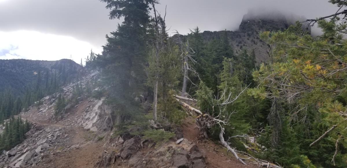 A mile or so short of the pass, Nectar passes me. It’s funny to think how I’ve crossed paths with her a few times over the last 2 months since first meeting her just before Forester Pass. Well, she’s the lead hiker/runner of the Cuddle Puddle crew who are now trying to complete the Oregon Challenge….that is making it from the CA border to the WA border in two weeks. Or about 460 miles in 14 days. You do the math. Well I’m not about to let the rest of them run me down, so I grab another gear and start running after her. It’s downhill, I’ve got 80’s metal blasting in my earbuds, and I’m motivated.